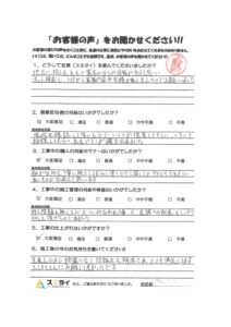 See All Reviews釘宮浩己05:07 07 Aug 22築16年で外壁塗装工事をお願いしました。3社見積りしましたが、見掛けの値引きがなく仕様と金額に納得し決めました。スミタイ店長さんによる外壁の傷み具合も写真で記録、具体的な見積り説明にも納得。足場施工撤去も早くて丁寧、塗装は一人の職人さんがきれいな塗装、丁寧な説明や後片付けで安心してお任せ。シール施工では職人さんが色の違いに気付き手配ミスもプロがカバー、流石と思いました。スミタイ品質管理担当者が厳しく仕上がりチェック、タッチアップ等も丁寧に対応されプロ意識を感じました。一部外壁色をチャコールに変える選択をしましたが、思い通りの仕上がりで満足しています。天候にも恵まれ納期通りに完成しました。ありがとうございました。また、10年後くらいにお願いしたいですね!MASAHIRO KOBASHI02:49 18 Jul 22外壁塗装工事でお世話になりました。時期的に梅雨時期だったこともあって工期を心配していたのですが、こちらの都合で1週間着工を遅らせてもらったにもかかわらず当初の予定通りに完工していただけました。出来栄えも期待通りで満足しています。契約前の打合せで塗装色を決めるのにカラーサンプルや映像を使ったサンプルを使用したのですが、思っていたより明るい色でした。ある程度、そういうことは想定していたので問題にはなりませんでしたが・・・出来れば、カラーサンプルは実際の塗料を使用したほうがより実際の色が分かると思います。もしですこの口コミを見られる方がいらしたら参考にして頂ければと思います。ほげほげ13:34 25 Jun 22屋根、外壁塗装の相見積を複数社に取らせて頂きましたが、最初に候補から除外しました。理由は以下です。他の営業の方なら違った結果になった可能性はあります。・各プランのデメリットの説明が一切ない・付帯部の無機を売りにしているようだが、実は過剰。無機やふっ素は次回施工時に同一塗料にした方が良いが、その考慮がなさそう・屋根、外壁施工面積がそれぞれ他の複数社と比較して20平方メートルの差異がある(合算では同じだが、各施工に使用する塗料の量まで出す見積もりなので不安材料にしかならない)・オートンイクシードの特性を考慮して施工しているか不明・上記もあり、トータルで客の家のことを本気で考えている印象を持てなかった義之11:35 11 May 22この度、屋根·外壁塗装でお世話になりました。来て下さった職人さんは、始まる前と帰る際には必ずあいさつをしてくれまして、塗装に関しては1人作業でしたが、丁寧に作業して頂きました。またスミタイの担当者様からは、その日にやった作業内容をメールで連絡して下さり、進捗状況が把握しやすかったです。塗装途中、気になる箇所がありスミタイの担当者様に連絡したところ、すぐにご対応してくださりとても嬉しかったです。今回ご縁が有りスミタイさんにお世話になりましたが、本当に良かったです。有難うございました。Kei06:38 27 Mar 22築22年の家が新築のようになりました!外装劣化診断に基づいて、色々な場所を細かく丁寧に補修、塗り替え、サイデイング張替えをして頂きました。色を決める際にも塗板やサイデイング見本、シュミレーション画像などを用意して下さったので考えていた以上の仕上がりで大満足です☆塗料も30年耐候性のものを選びましたので、多少値段は高くなりましたが、それ以上にそれぞれの職人さん方の技術の高さに本当に感動しております。私達のこだわりも強く、色々なお願いを聞き入れて下さり本当にありがとうございました。最終的な報告書や保証書があることも大変嬉しいのですが、施工中に作業報告などの写真をラインなどで送って下さると素人の私達にとってはより安心かな、と思います。m uetake22:23 06 Mar 22外壁と屋根の塗装をお願いしました。足場組立、高圧洗浄、塗装までスムーズに施工していただきありがとうございました。色も希望のものを考慮していただき仕上がりには満足しています。コスト的にも満足できるものでした。これから塗装を考えている方はぜひスミタイさんを候補にしていただいて間違いないと思います。営業の方には丁寧な対応をしていただいたものの、多忙なようでスケジュールのやりとりで少し心配になってしまうことがありましたので、改善してもらえるとより良いと思います。ETU YOSHI23:17 15 Feb 22そろそろ外壁や屋根の塗装を検討していたところ、近くで塗装をしていたこちらの仕事を見て相談してみようと思いました。屋根や壁の色などサンプルやシュミレーションを利用、また予算も検討していただき、納得してお願いしました。職人の方も手際よく進み具合を聞いても分かりやすく説明してくれ、仕上がりも良かったです。お世話になりました。S KEN04:04 16 Jan 223社くらい見積りをとってスミタイさんにお願いした理由は値段がだとうという事ももちろんですがうちの営業担当の説明が説得力があったと言うことたとえば何も