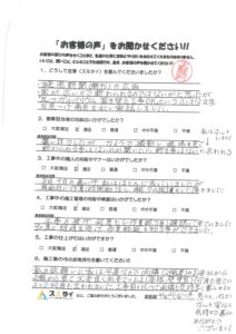 落合優00:51 03 Apr 22今回初めてスミタイさんに見積もりをお願いしました。担当者の分かり易く丁寧な説明だったので他社での見積もりをすることなく工事をお願いしました。職人さんも丁寧で、仕上がりはとても綺麗で大変満足しております。また工事日程も予定通りに完了しました。ありがとうございました。