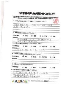 うちはひとつ工事でトラブルがあってそれでどうするかってなった時にスミタイさんは素早くもう一度足場をかけて補修するという判断をしてくれた