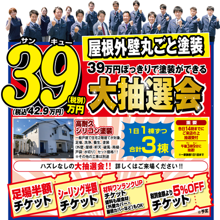 お問合せが多くいただいている目玉企画🤓🤓39(サンキュー)万円屋根外壁まるごと塗装です!!