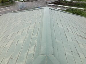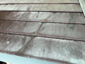 屋根に苔やカビが付着している場合、塗膜の防水機能が低下し、水分が滞留しやすい環境になっている可能性があります。苔やカビは見た目が悪いだけでなく、塗膜や屋根材そのものを傷める原因になります。