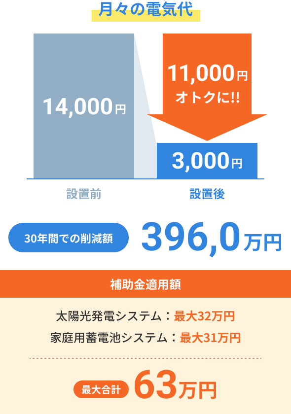 太陽光パネルは約30年間発電できますが、売電できるのは最初の10年だけで、その後は売電価格が大幅に下がります。一方で電気代は上がり続けているため、発電した電気は売るより自家消費した方が断然お得です。POINT1 -