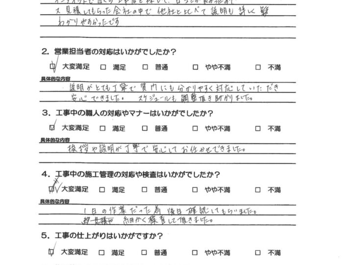 お客様の本当の満足は何なのか?を考えたときに、“外装劣化診断士などの専門スタッフによる外壁屋根の適正診断を行い、それに伴う最適なご提案と高品質施工をご提供し、さらには引き渡し後のアフターフォローなど全てにおいて自社一貫管理体制のもとでお客様にサービスをご提供することである”と私は考えます。
