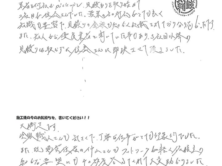 お客様の声 今まで関わらせて頂いた大切なお客様のお便り
