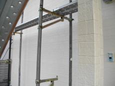 | 外壁の中塗りです。上塗りが、より密着するように下地の工程も手を抜けません。 | 玄関前の柱です。こちらも中塗りをしていきます。 | 中塗りを終えたところで、上塗りをしていきます。 |