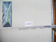 | 中塗りをしたことで、上塗り塗料の性能が上がっています。 | 玄関前の上塗りです。 | 軒天、破風、戸袋なども仕上げます。 |