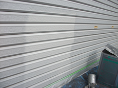| ここまでで塗装の工程の半分が完了です。 | 車庫のシャッターも今回は塗り替えていきます。 | シャッターの扉もしっかりと下塗りを行います。 |