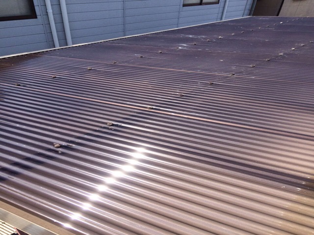 | 壁との取合い部分はシーリングを施します。 | 波板を遮熱のタイプに切り替えました。 | 今の波板は強度が断然違います。 |