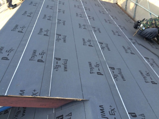 | まずは、瓦を撤去していきます。 | 下地となる野地板を設置します。 | ここが重要!防水シートを敷き詰めていきます。 |