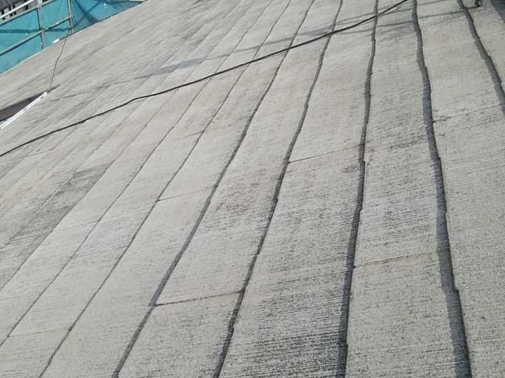 既存屋根材はスレート屋根です。石質の薄い板を使用しているため、劣化や反りがしやすい材料です。 -
