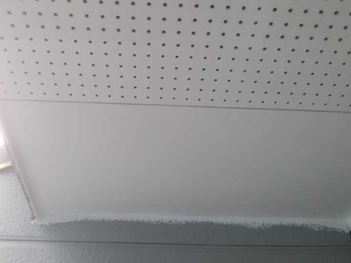 軒天部分の褪色が見受けられます。今回、軒天専用塗料を塗布することで素材を長持ちさせることができます。 -