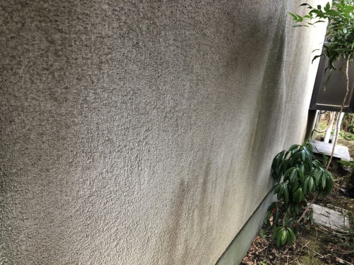 外壁材に一部カビ・コケが発生しているところがあります。低汚染塗料の使用や専用の添加剤を塗料に混ぜることで、カビ・コケの発生を抑制することができます。 -