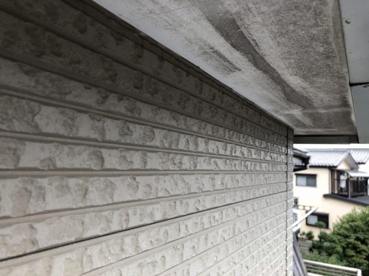 紫外線による影響から、塗料の劣化を示すチョーキングが発生しております。しっかりと高圧洗浄で汚れを落とし、塗装をする必要があります。 -