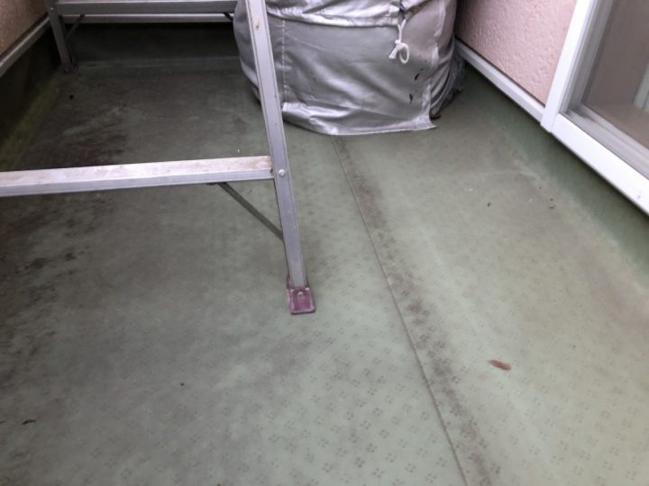 既存バルコニーは塩ビシートです。劣化が進んでおり、今回のタイミングで防水専用塗料を施工することを推奨いたします。