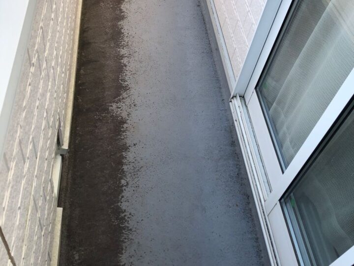 既存バルコニーはFRPです。今回のタイミングで防水専用塗料を施工することを推奨いたします。ベランダ下の軒天材が傷み、雨漏り懸念があります。