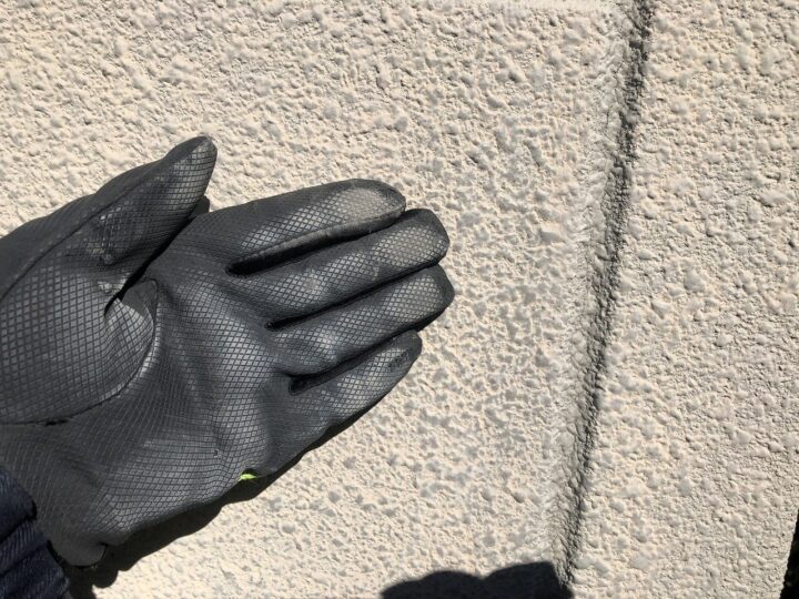 紫外線による影響から、塗料の劣化を示すチョーキングが発生しております。しっかりと高圧洗浄で汚れを落とし、塗装をする必要があります。 -