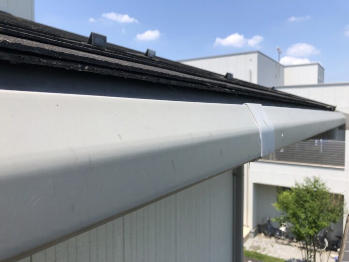 雨樋は塩ビ鋼板です。紫外線の影響により塩ビ鋼板が劣化すると塩ビが剥がれ錆びて腐食していきます。 -