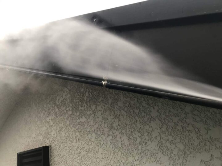 外壁材に一部カビ・コケが発生しているところがあります。低汚染塗料の使用や専用の添加剤を塗料に混ぜることで、カビ・コケの発生を抑制することができます。 -