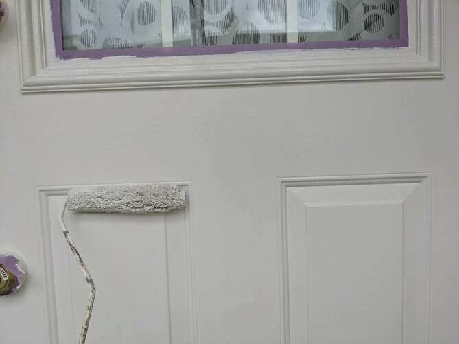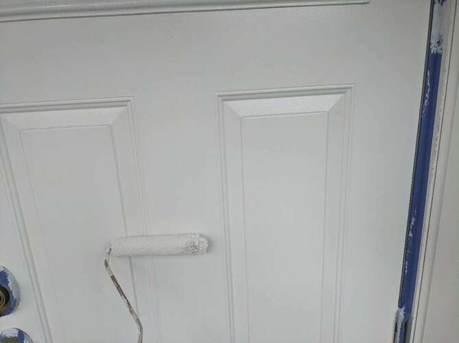ドアの下塗りを行っています。 -
