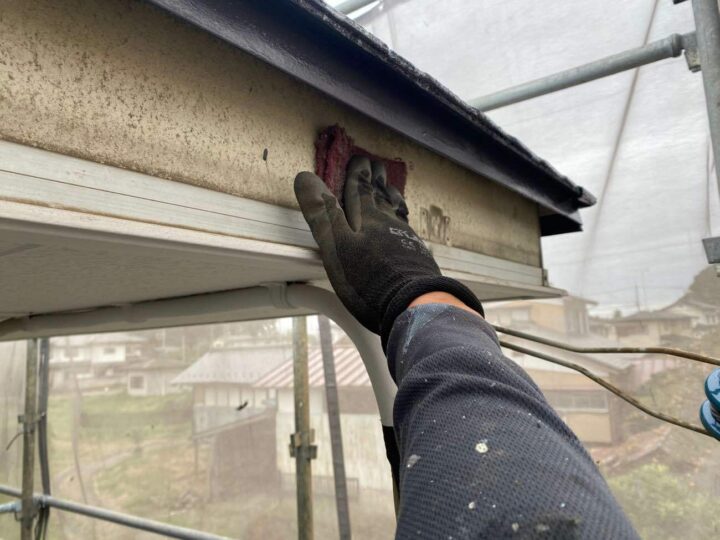 紫外線による影響から、塗料の劣化を示すチョーキングが発生しております。しっかりと高圧洗浄で汚れを落とし、塗装をする必要があります。 -