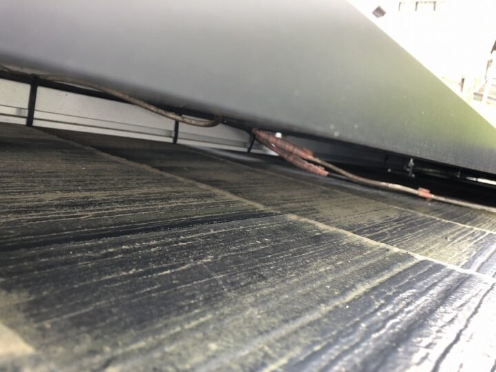直接紫外線は当たりませんので、直接紫外線が当たる箇所と比較すると劣化がしていませんが、ソーラー下も経年的な劣化は見受けらえます。 -