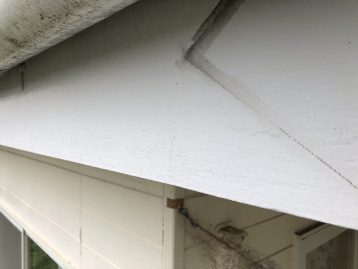 破風のチョーキングが見受けられます。今回、外壁と併せて塗装をすることで、お家を長持ちさせることができます。 -
