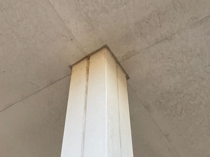 軒天部分の褪色が見受けられます。今回、軒天専用塗料を塗布することで素材を長持ちさせることができます。