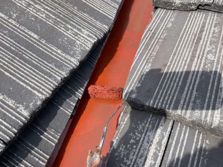 モニエル瓦は吸い込みが激しいため、スーパームキコートルーフプライマーを2回以上塗装します。 -