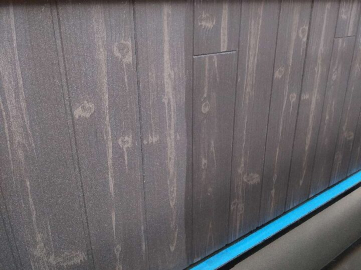 外壁の洗浄作業を行っています。浮いた塗膜やコケ等をきれいに洗い流し、塗装できる状態にします。 -
