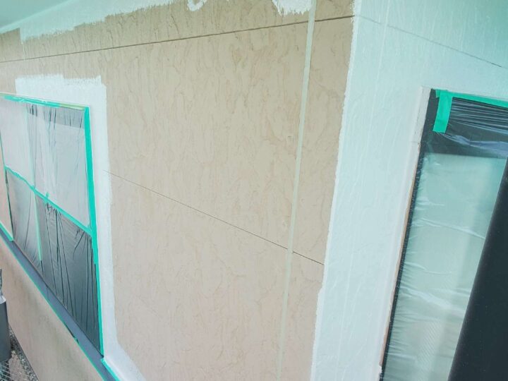 紫外線による影響から、塗料の劣化を示すチョーキングが僅かに発生しております。しっかりと高圧洗浄で汚れを落とし、塗装をする必要があります。 -