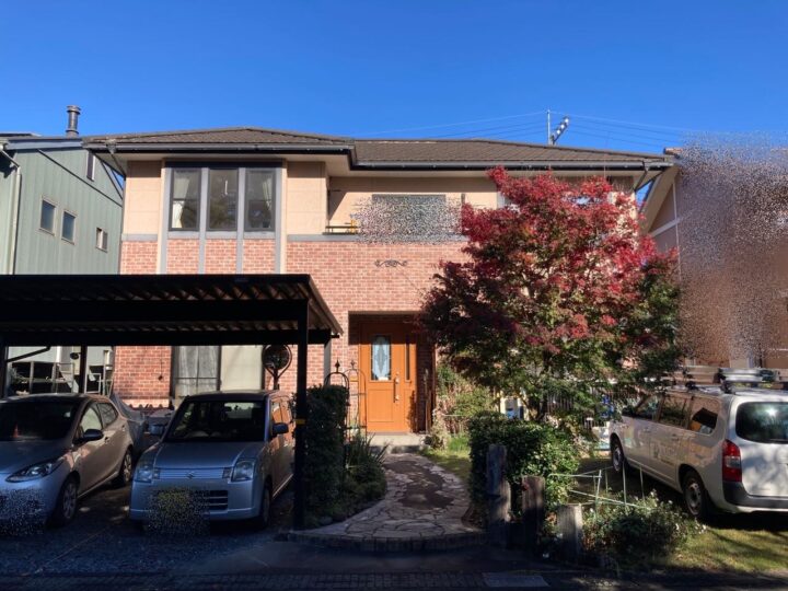 | 使用材料 | 屋根塗装:ジャパンカーボライン㈱ スーパームキコートルーフ カラー:9115 マホガニー 外壁塗装:ジャパンカーボライン㈱ スーパームキコート カラー:8072 ワームクレイ/9018 ベビーピンク |