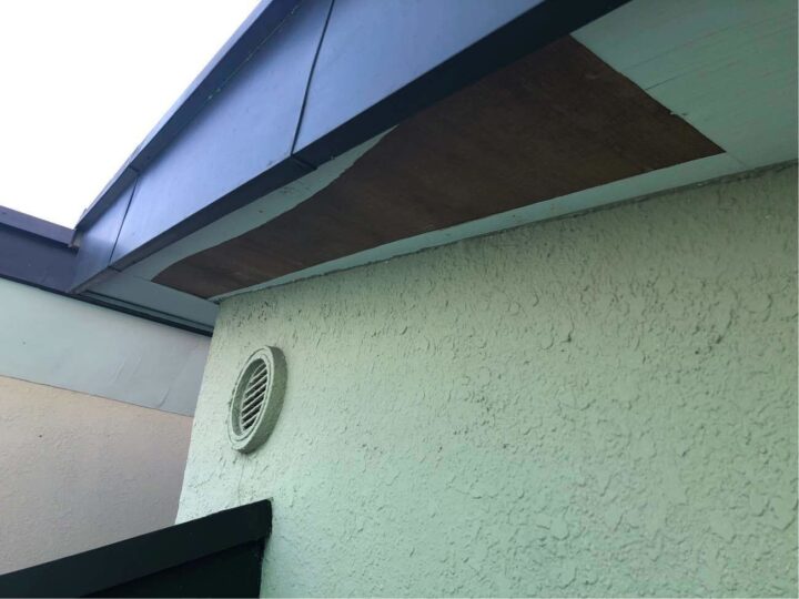 破風の褪色が見受けられます。今回、外壁と併せて塗装をすることで、お家を長持ちさせることができます。 -