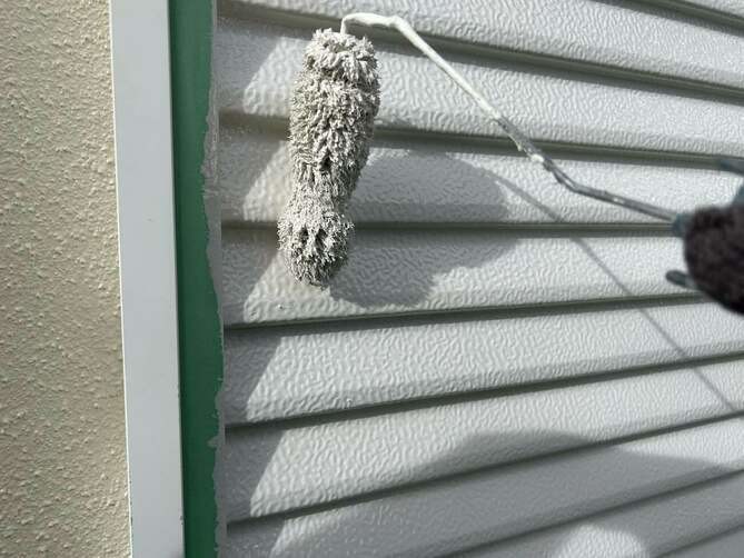 紫外線による影響から、塗料の劣化を示すチョーキングが発生しております。しっかりと高圧洗浄で汚れを落とし、塗装をする必要があります。 -