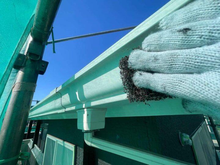 雨樋のチョーキングが見受けられます。今回、外壁と併せて塗装をすることで、お家を長持ちさせることができます。 -