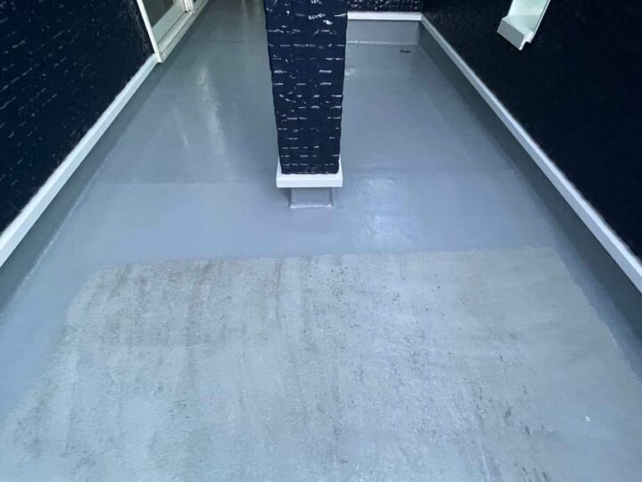 既存バルコニーはFRPです。劣化が進んでおり、今回のタイミングで防水専用塗料を施工することを推奨いたします。
