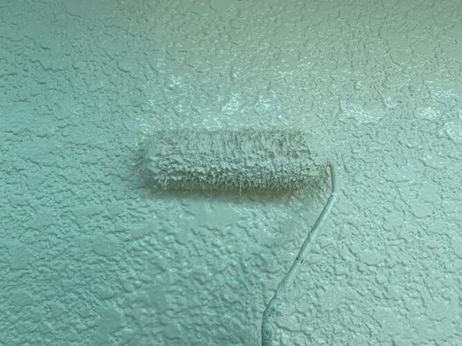 軒天の上塗りを行い完了です。 -