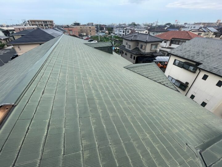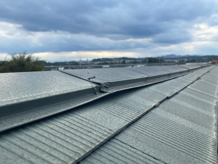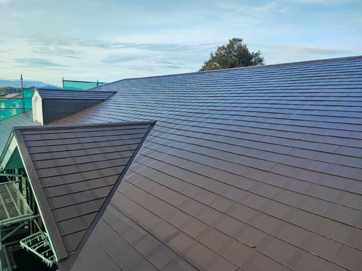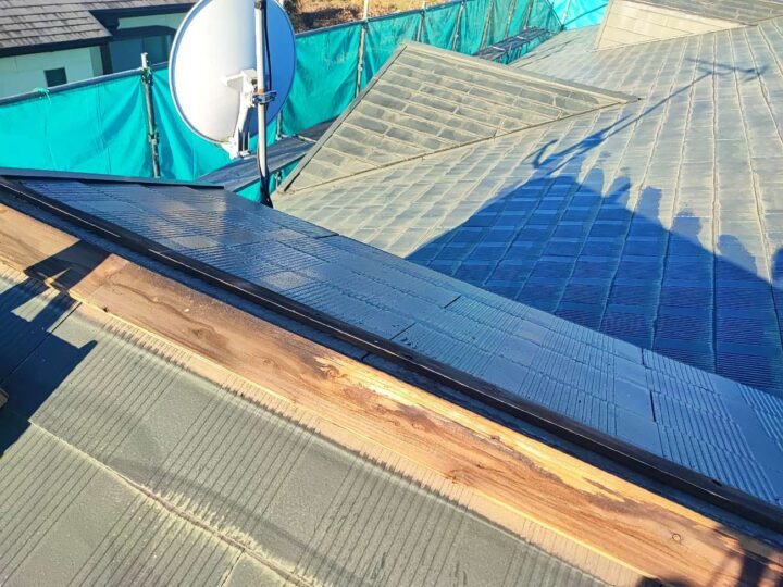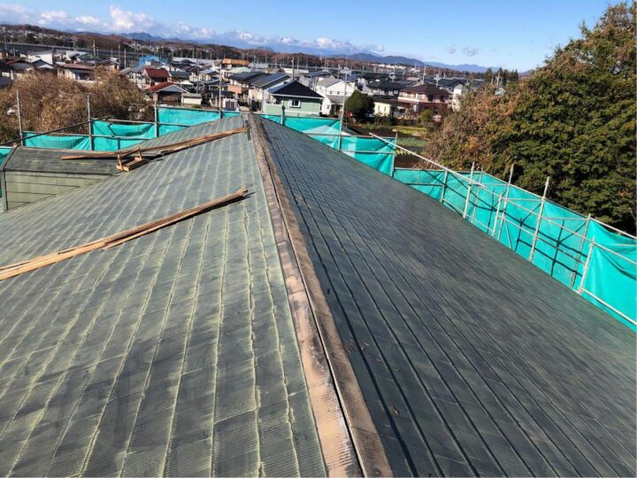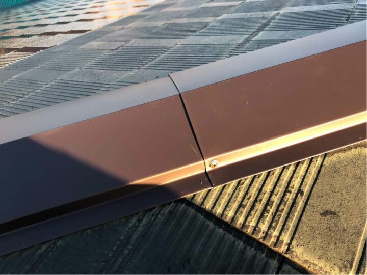 | 使用材料 | 屋根塗装:ジャパンカーボライン㈱ スーパームキコートルーフ カラー:ラセットブラウン 棟板金交換工事 |