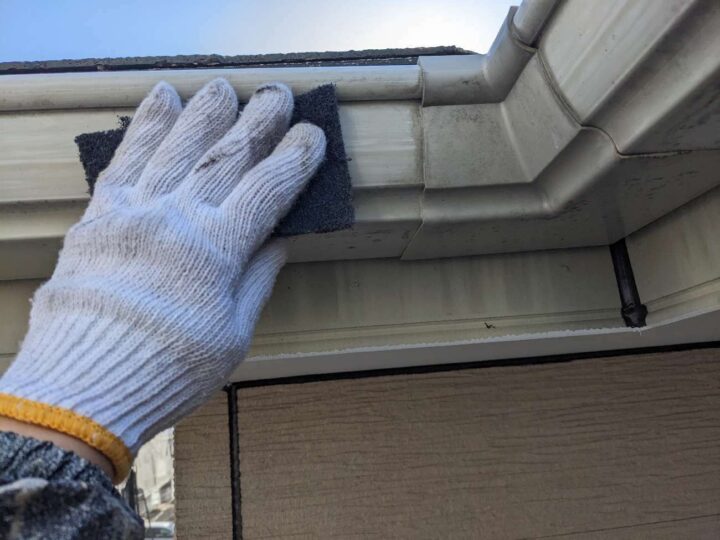 雨樋のチョーキングが見受けられます。今回、外壁と併せて塗装をすることで、お家を長持ちさせることができます。 -