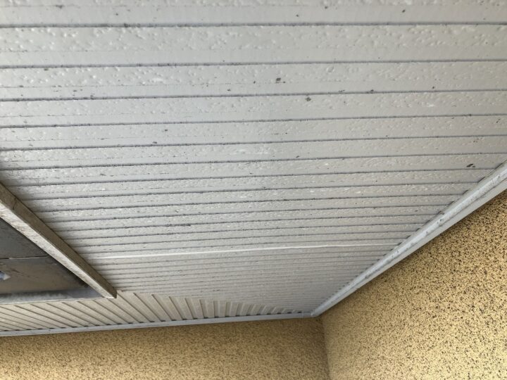 軒天部分の褪色が見受けられます。今回、軒天専用塗料を塗布することで素材を長持ちさせることができます。 -