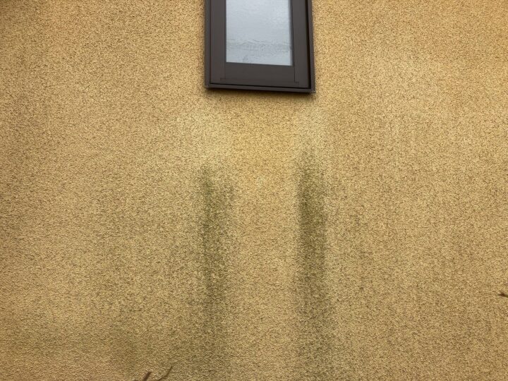 外壁材に一部カビ・コケが発生しているところがあります。低汚染塗料の使用や専用の添加剤を塗料に混ぜることで、カビ・コケの発生を抑制することができます。 -