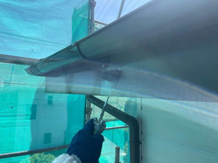 雨樋のチョーキングが見受けられます。今回、外壁と併せて塗装をすることで、お家を長持ちさせることができます。 -