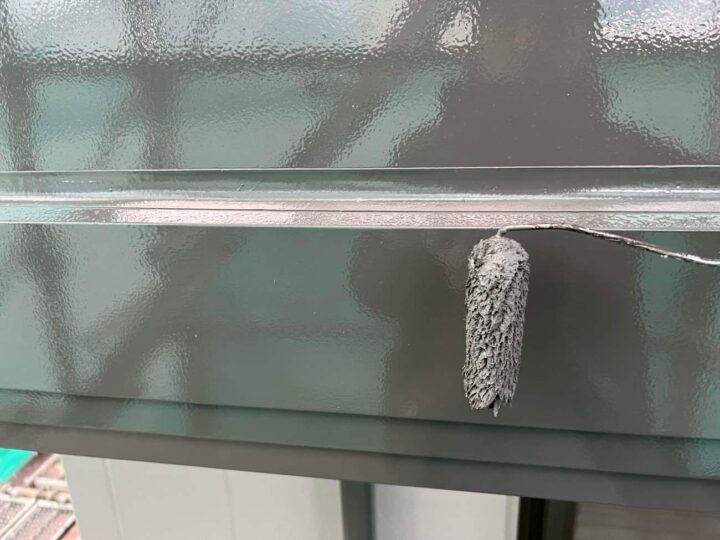 屋根の中塗りを行っています。 -