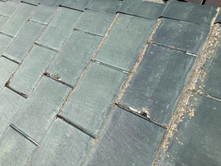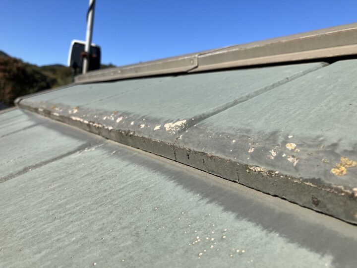 小口部分をご確認いただくとセメント瓦であることがわかります。モニエル瓦は小口部分に凹凸があります。 -