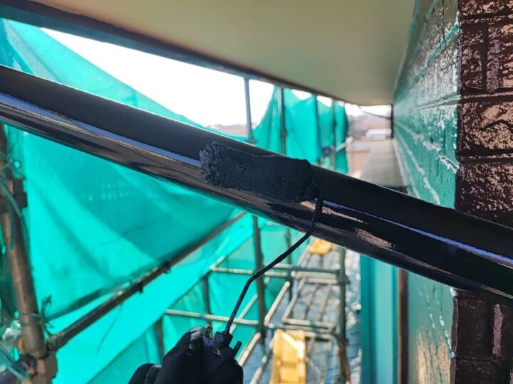 雨樋のチョーキングが見受けられます。今回、外壁と併せて塗装をすることで、お家を長持ちさせることができます。 -