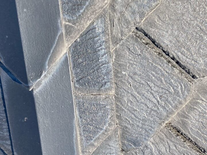スレートは厚みが薄いので経年劣化でヒビが入ってしまいます。シーリングで補修してから塗装する必要があります。 -