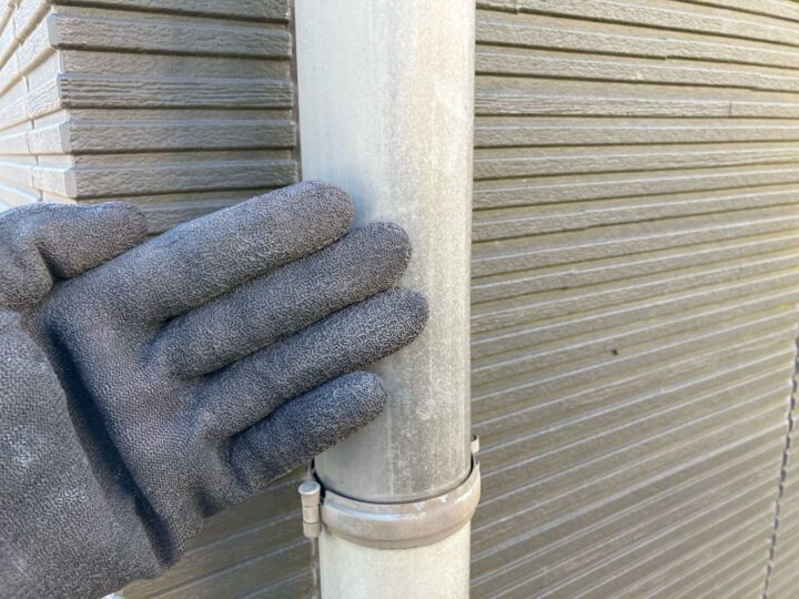 雨樋のチョーキングが見受けられます。今回、塗装をすることで長持ちさせることができます。 -