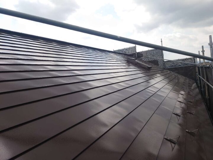 既存屋根材は金属屋根 横葺きです。 アルミニウム55%のガルバリウム鋼板のため、軽量でサビにくい素材です。 -