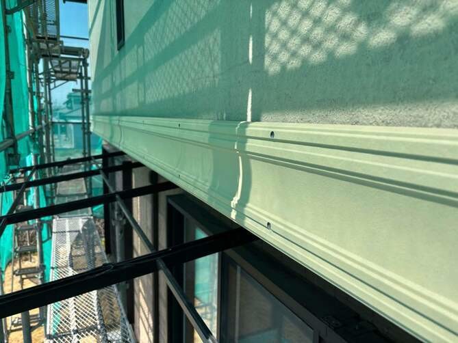 幕板のはがれが見受けられます。幕板カバーすると雨樋交換も必要になるため、今回部分交換でのご提案になります。 -