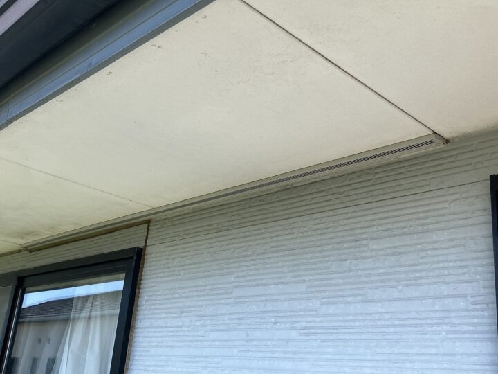 軒天部分の褪色が見受けられます。今回、軒天専用塗料を塗布することで素材を長持ちさせることができます。