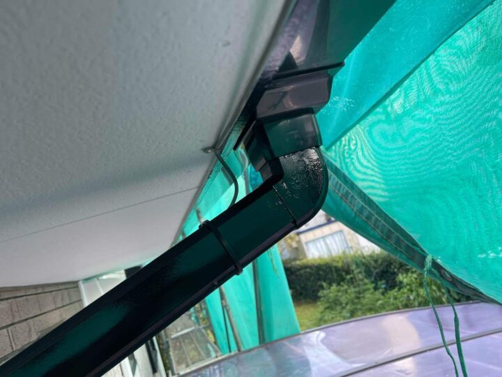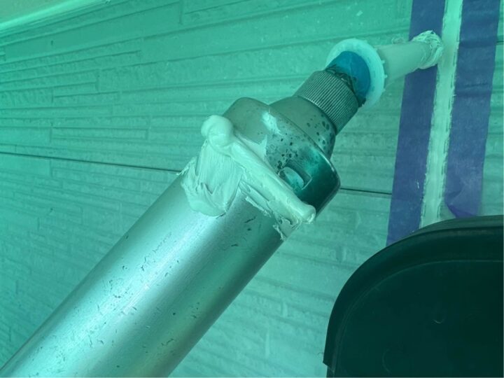 雨樋のチョーキングが見受けられます。今回、外壁と併せて塗装をすることで、お家を長持ちさせることができます。